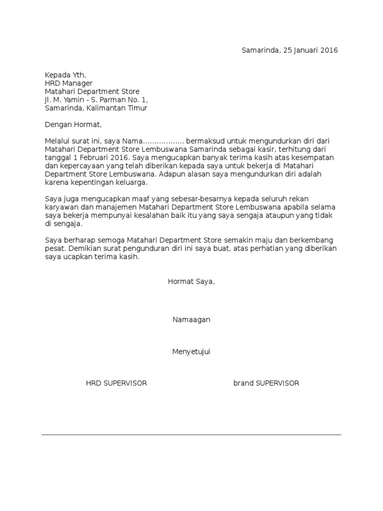 Contoh Surat Resign Karena Keluarga - Contoh Surat Pengunduran Diri Karena Masalah Keluarga Contoh Surat. Karena contoh surat pengunduran diri diatas cocok untuk semua surat pengunduran diri yang ditujukan untuk semua perusahaan. Salah satu hal yang perlu diperhatikan adalah cara menyampaikan alasan. Contoh surat pengunduran diri karena keluarga. Resign atau bisa disebut juga dengan mengundurkan diri dari suatu pekerjaan di sebuah instansi atau sebuah perusahaan kadang membuat kita bimbang. Pertamnus jaya karena urusan ingin fokus membangun bisnis keluarga.